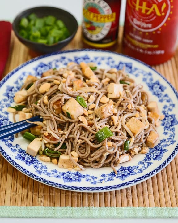 Japanese Soba Noodle Soup with Tofu and Greens